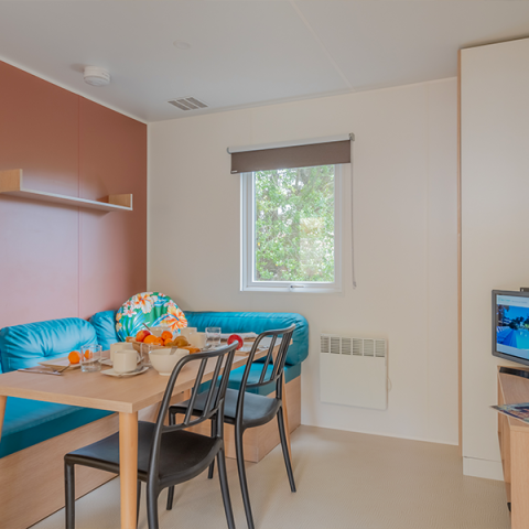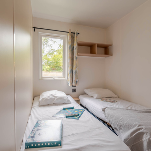 Für kleinere Budgets oder Abenteurer, die ein einzigartiges Erlebnis auf der Insel Ré suchen, bieten wir Zeltbungalows oder Lodges für 4 Personen ohne Sanitäranlagen. Für größere Familien gibt es 2-Zimmer-Mobilheime für 6 Personen (Schlafsofa, 2 Badezimmer) oder XXL-Cottages mit 3 Zimmern für 8 Personen und 2 Badezimmern für große Gruppen. Barrierefreie Mobilheime stehen ebenfalls zur Verfügung. Der Mietpark unseres Campingplatzes in der Nähe von La Flotte richtet sich an alle Urlauber. Nehmen Sie sich Zeit, um die Unterkunft auszuwählen, die zu Ihnen passt, und entdecken Sie unsere Sonderangebote für Hoch- und Nebensaison, um Ihre Urlaubskosten weiter zu senken. Haben Sie Ihr Premium-Mobilheim gefunden? Buchen Sie es und genießen Sie vor Ort alle 5-Sterne-Einrichtungen: beheizter Pool, Tennisplatz, Mehrzweck-Spielfeld, Bouleplatz, Bar-Restaurant, Kinderspielplatz und vieles mehr.