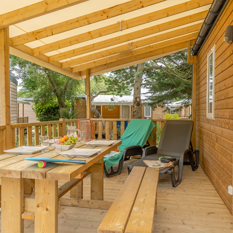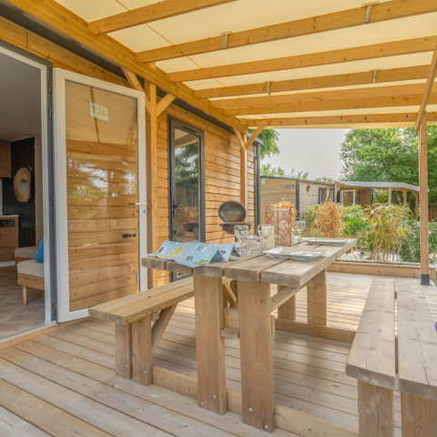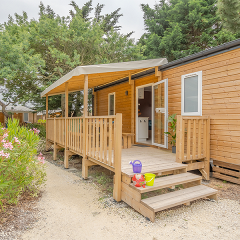 Suchen Sie eine günstige Mobilheimvermietung in der Nähe von La Flotte-en-Ré? Der 5-Sterne-Campingplatz, nur 5 km von La Flotte-en-Ré entfernt, bietet anspruchsvollen Gästen, die Luxus und Komfort zu niedrigen Preisen suchen, prestigeträchtige Mobilheime von 16 bis 36 m² für 4 bis 8 Personen. Genießen Sie unvergessliche Familienferien in Frankreich! Unsere erstklassigen Unterkünfte mit privater Holzterrasse und voll ausgestatteter Küche sind ideal für Familien und Gruppen, die sowohl die Privatsphäre eines Ferienhauses als auch die warme Atmosphäre eines Freiluft-Hotels genießen möchten. Unser Campingplatz ist perfekt für Familienurlaube in einem familienfreundlichen Campingplatz in der Region Poitou-Charentes. Diese modernen Mobilheime zeichnen sich durch klare Linien, eine harmonische Integration in das bewaldete Gelände, hochwertige umweltfreundliche Materialien, moderne Ausstattung und eine ausgezeichnete Raumnutzung aus. Ihr Stellplatz befindet sich in der Nähe des Spielplatzes und des beheizten Pools unserer Anlage.