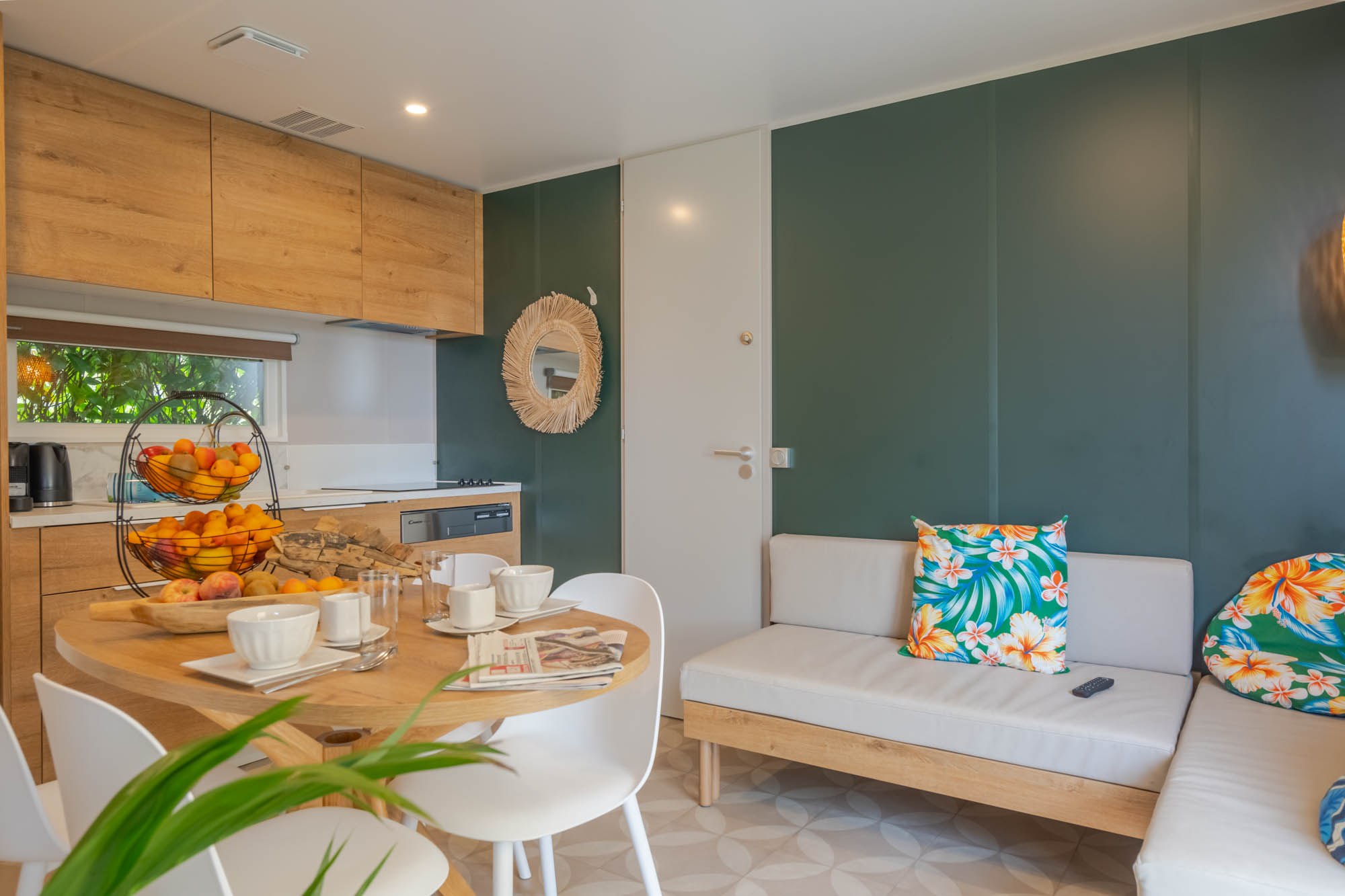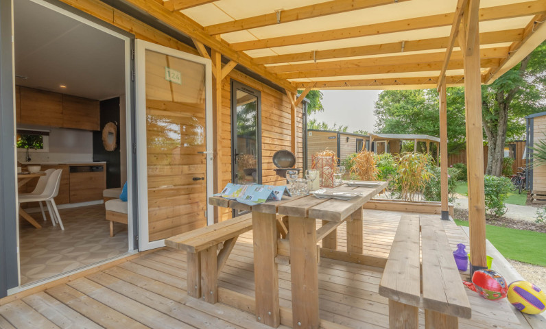 2 bathrooms/2 WCs 1 parents' bathroom: shower, washbasin and WC 1 bathroom with shower, washbasin and separate WC Fully equipped kitchen with induction hob, fridge-freezer, extractor fan, microwave, capsule espresso machine, juicer, toaster, kettle, seafood cutlery, crockery and kitchen utensils. Dishwasher, heating in all rooms, water and electricity included. 15 m2 covered wooden terrace with garden furniture including 1 table, 2 benches and 2 deckchairs. Landscaped plot.