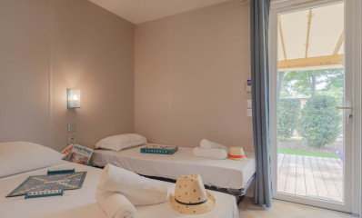 A master bedroom with one double bed (160 x 200 cm) and one bedroom with 2 single beds 80 x 190 cm.
