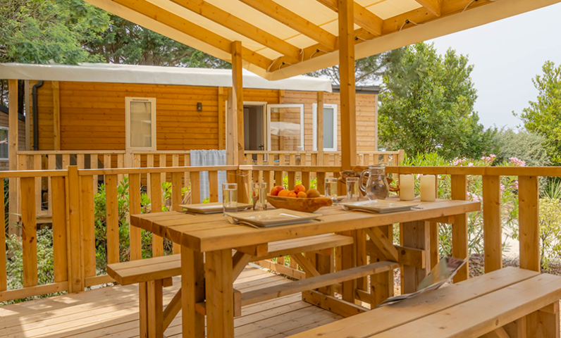 - Large semi-covered wooden terrace