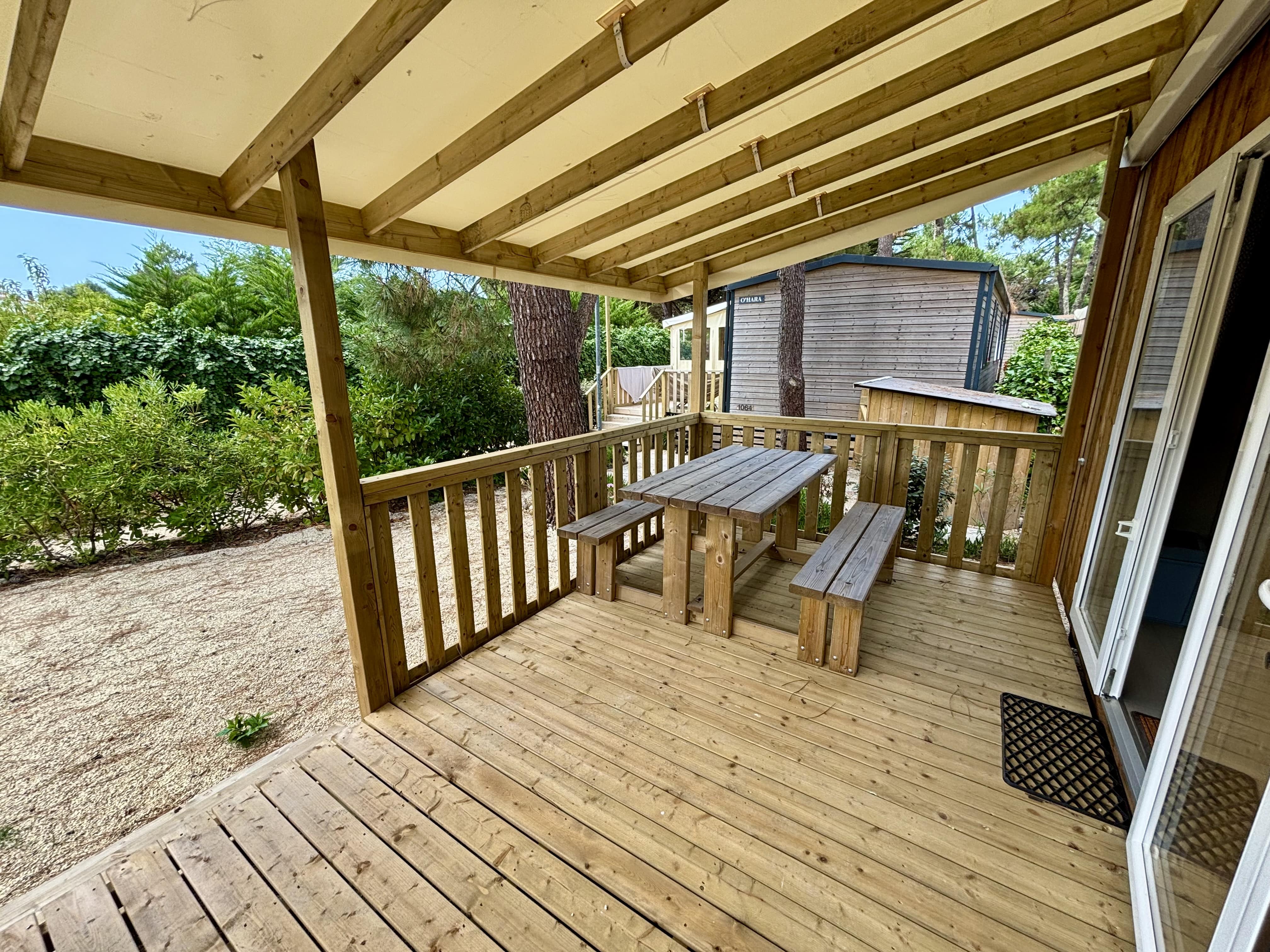 - Large covered wooden terrace