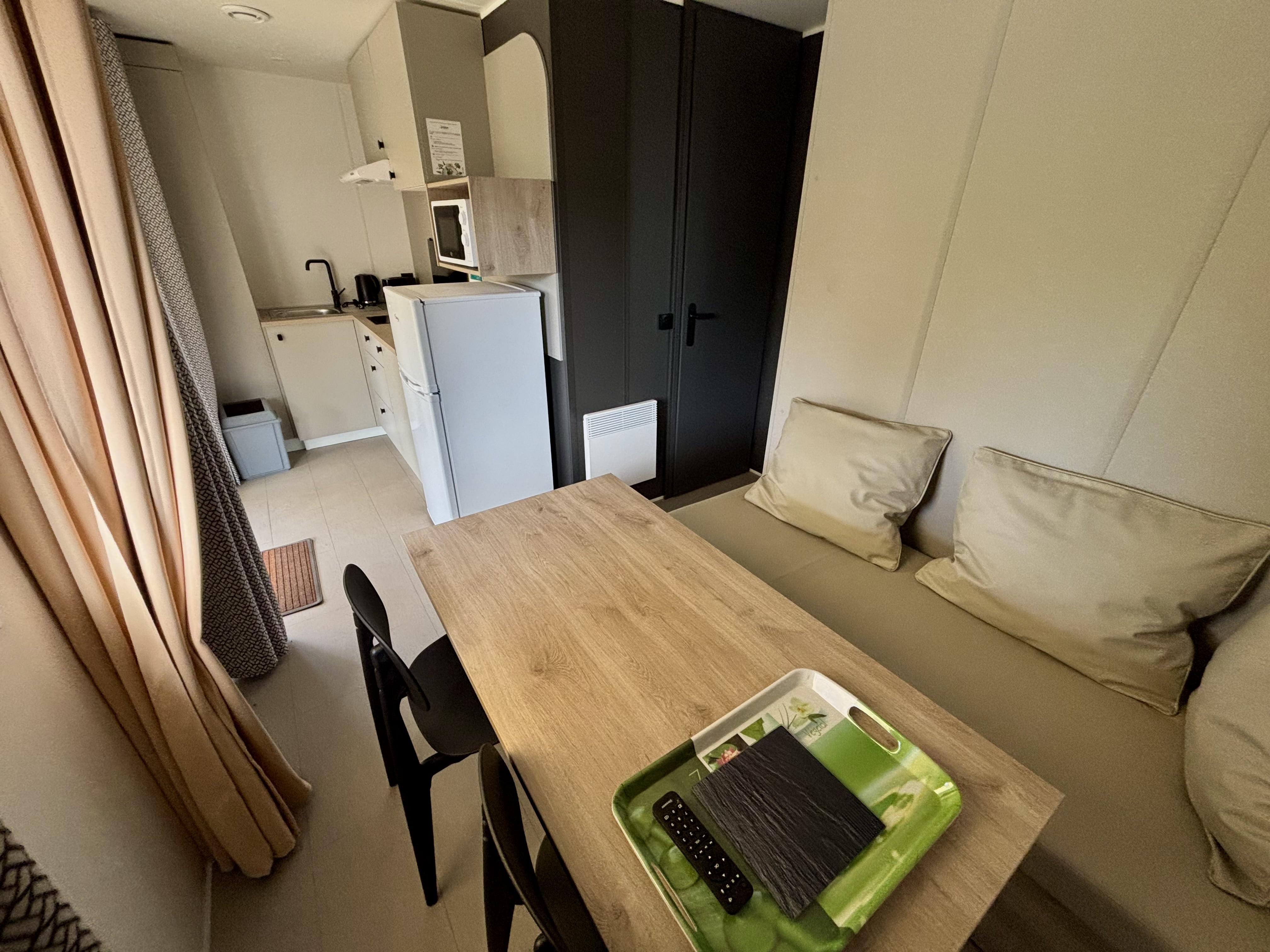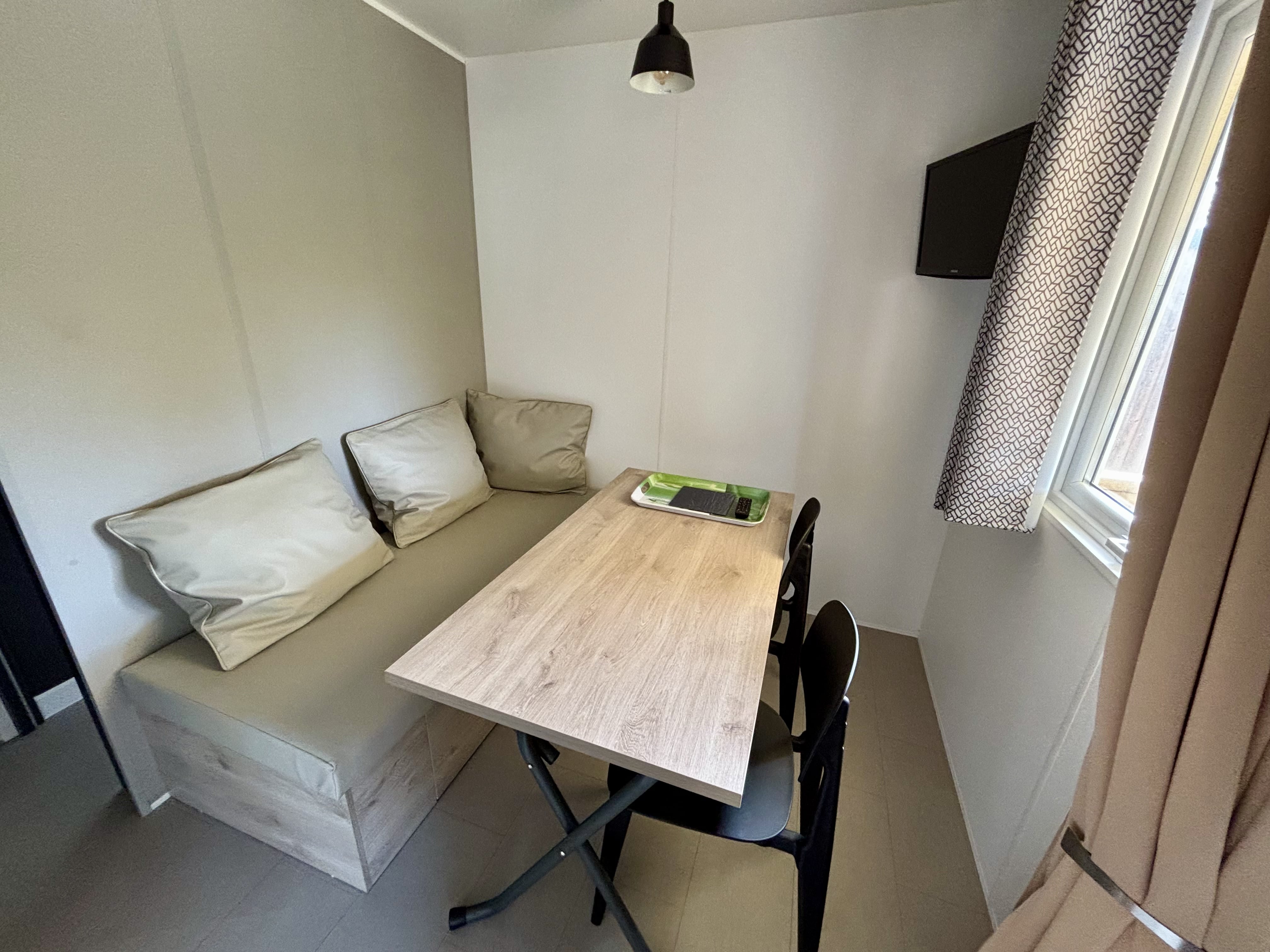 - Double bed (140x190) (duvet and pillows provided)