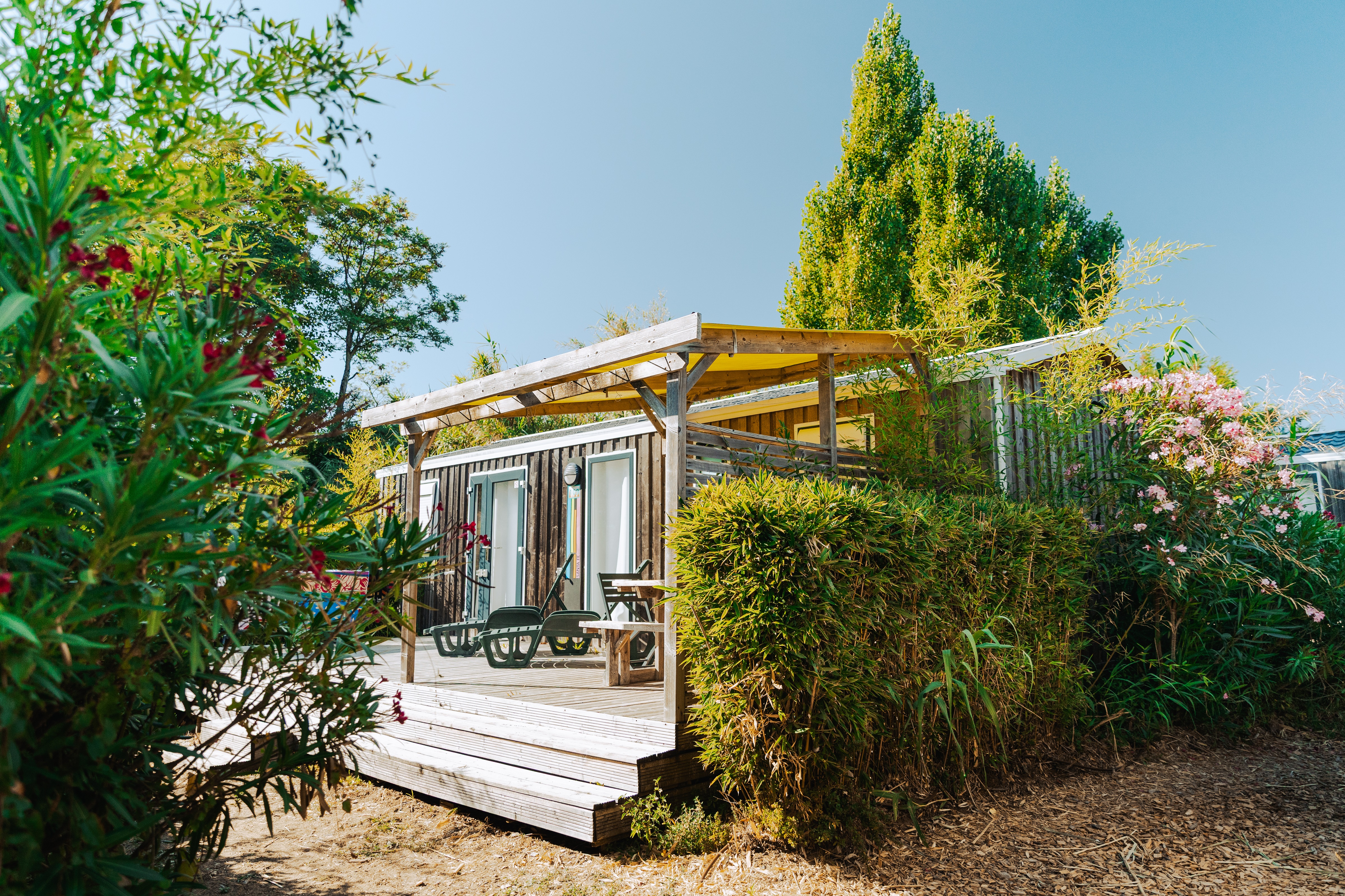 El camping en la isla de Ré, en Sainte-Marie-de-Ré, con piscina climatizada, te ofrece una selección de mobil homes de alta gama con terraza cubierta privada, habitaciones separadas y cocina equipada.