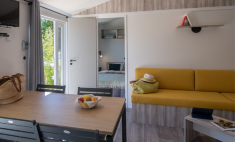 Le cottage Prestige 3 chambres 2 salle de bains a une surface de 36 36 m² pour 6 a 8 personnes, Côté chambres: 1 chambre avec 1 grand lit 2 places de 160 x 190 cm et salle de bain attenante avec douche et wc. 2 chambres avec 2 lits 1 place 80 x 190 cm. Salon: 1 banquette convertible 2 places en 120 x 190 cm. Couettes et oreillers fournis. Draps et linge de maison non fournis. Cuisine équipée avec plaque à induction, réfrigérateur-congélateur, hotte, micro-ondes, cafetière Nespresso à capsules, presse-agrumes, grille-pain, bouilloire, couverts à fruits de mer, vaisselle et ustensiles de cuisine. Une autre salle d'eau avec douche et lavabo. WC séparés, Chauffage dans toutes les pièces, fourniture d'eau et d'électricité incluse. Télévision incluse. 1 connexion Wifi incluse. Terrasse bois de 15 M2 couverte avec salon de jardin comprenant 1 table, 2 bancs et 2 transats. Photos non contractuelles.